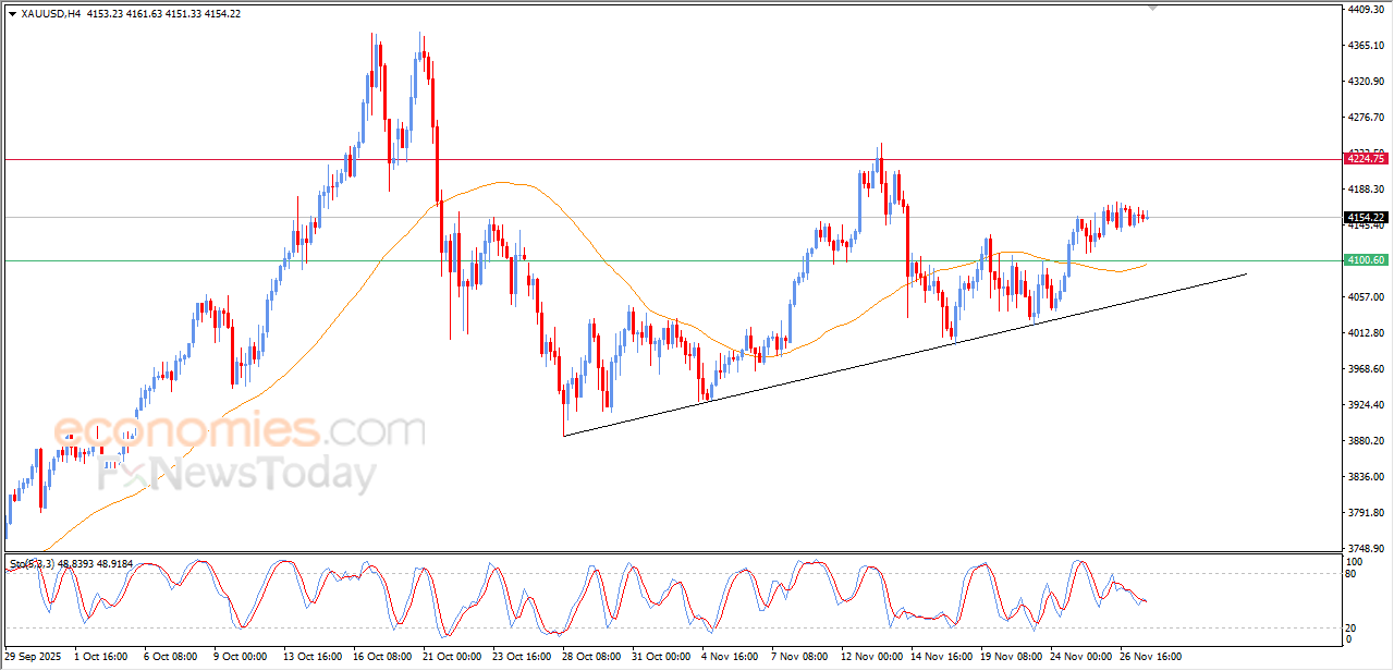 黄金价格在有限的横盘震荡区间内波动,试图获得上涨动能以期恢复并再次上涨。在主要上涨趋势占据主导地位,且短期内与次要趋势线并行交易的同时,相对强弱指标出现了积极的重叠信号,此前黄金价格已达到远超其价格走势的超卖水平。