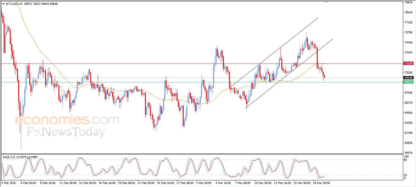BTCUSD 价格在最近的盘中交易中持续下跌,受到持续的下行压力影响,原因是其交易价格低于 EMA50,并退出了此前限制其短期交易的小型上升通道范围。尽管相对强弱指标在达到超卖水平后开始发出积极信号,但这表明下行动能依然强劲。