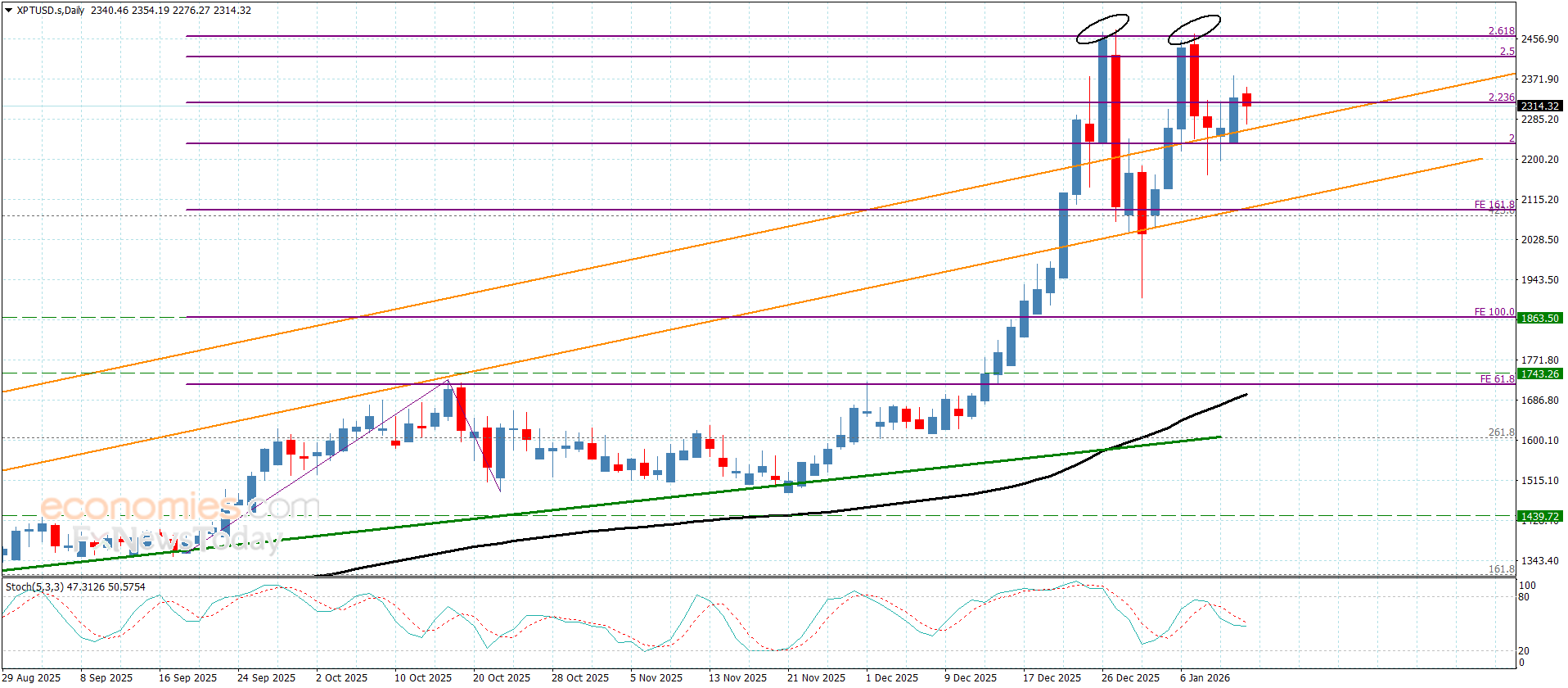 铂金价格在上涨行情中保持稳定,因为在 2235.00 美元处继续形成初步支撑,但由于其对上涨动能的依赖,价格在 2325.00 美元附近持续波动,自昨日以来未录得任何正向水平,导致其横盘整理疲软。
