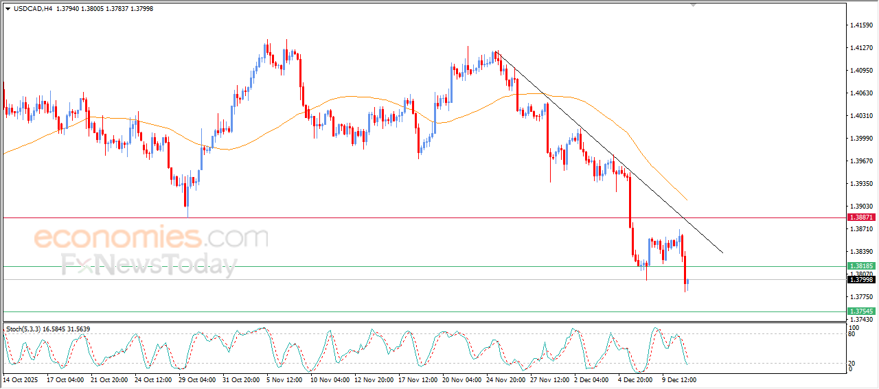 美元/加元 (USDCAD) 价格在最近的盘中交易中走低,跌破了 1.3820 的关键支撑位(该支撑位在我们之前的分析中代表潜在目标位)。尽管美元/加元已达到超卖水平,但相对强弱指标 (RSI) 仍出现负面信号,短期内主要下跌趋势占据主导地位,且其走势与支撑该趋势的陡峭下跌趋势一致。