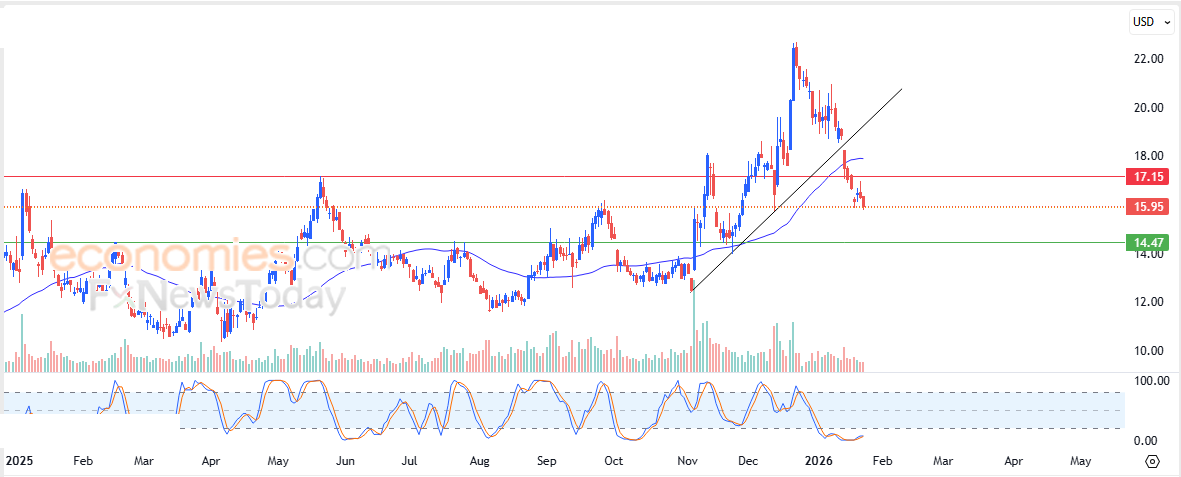 因此,我们预计只要股价保持在 17.15 美元阻力位下方,在接下来的交易中股价就会下跌,目标价位为 14.50 美元支撑位。