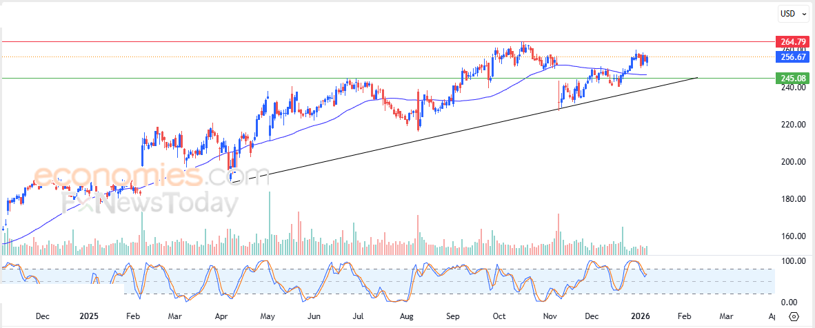因此,我们预计只要 245.00 美元的支撑位能够守住,股价就会在接下来的交易中上涨,目标是 264.80 美元的关键阻力位。